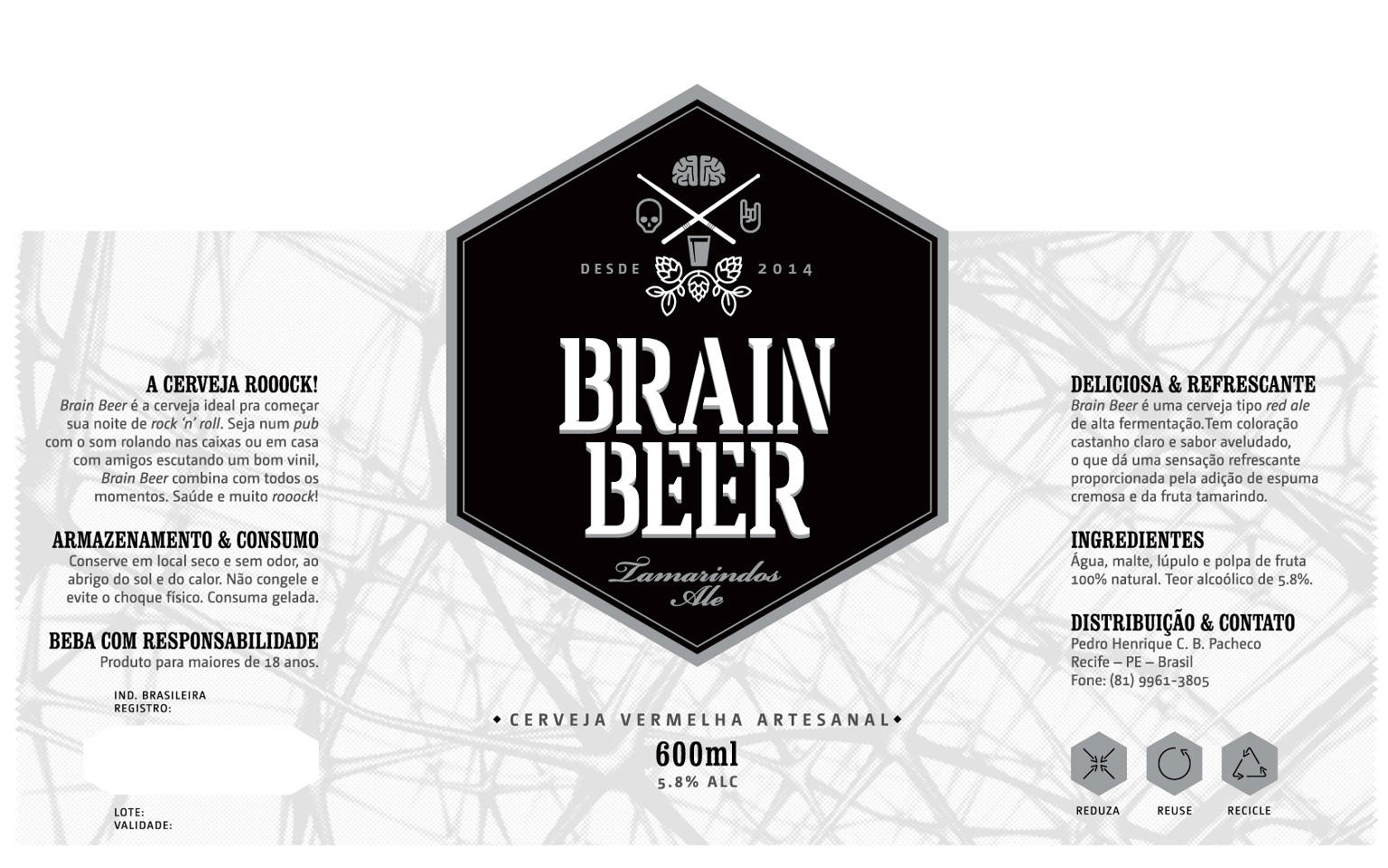 Brain Beer has been crafted in the style of a red ale, infused with the essence of rock 'n' roll (PE) – 2014.